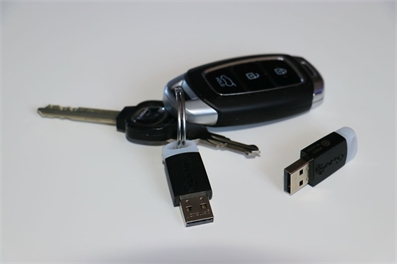Token se připojuje přímo k USB portu počítače, nepotřebujete žádnou speciální čtečku. Provedení tokenu přímo vybízí k připnutí na svazek klíčů, což je velmi praktické – máte ho vždy při sobě, nemůžete jej zapomenout nebo někam založit jako čipovou kartu.